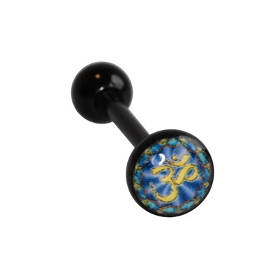 Tongue piercing in black chirurgical steel, Ohm blue