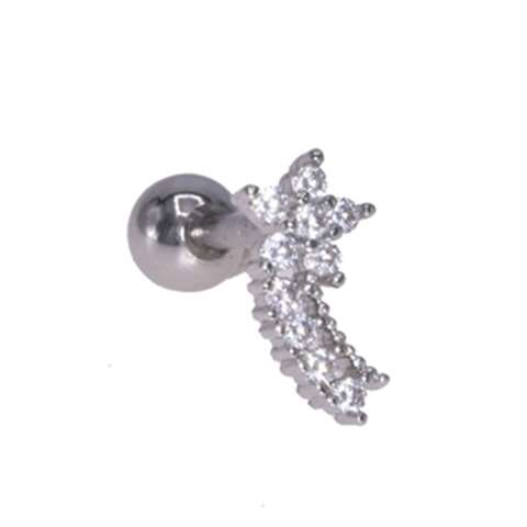 Tragus/helix piercing in chirurgical steel, stars with white crystals