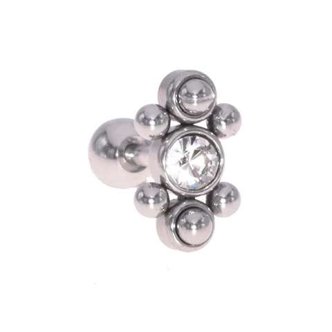 Tragus/helix piercing in surgical steel with a white crystal and small balls