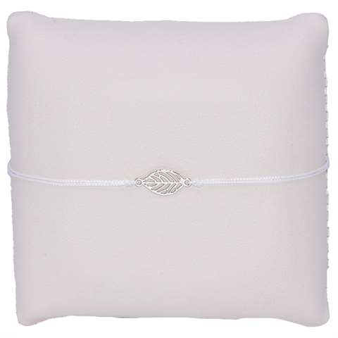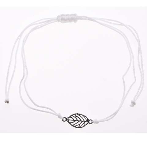 White cord bracelet with a leaf in the middle! This bracelet is adjustable with a pull-tie closure and fits every wrist. Pull-tie closure simply means that you can easily take it off and on by pulling the cords! The length of the motif is 12 mm, the width 7 mm.