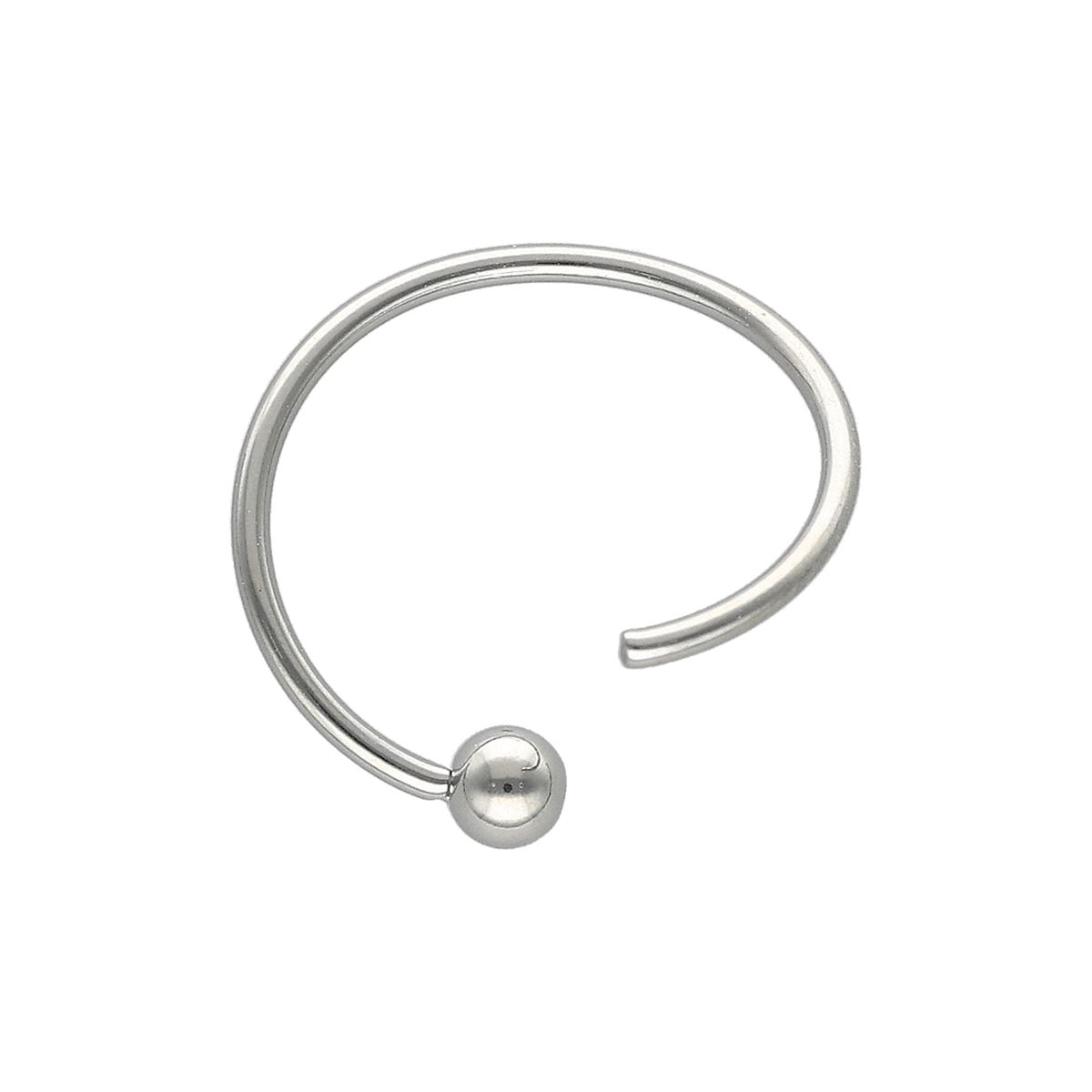 L'anneau continu est fabriqué en acier chirurgical 316L de haute qualité. Avec la boule attachée à l'anneau, elle donne l'apparence d'un anneau BCR. L'anneau est facile à plier et à insérer dans le canal de dérivation (nez, oreille et lèvre). Le matériau utilisé est caractérisé par ses propriétés particulières telles que la solidité des couleurs et la résistance des matériaux. L'anneau a une épaisseur de tige de 0,8 mm et est disponible en diamètres de 6 mm, 8 mm et 10 mm.