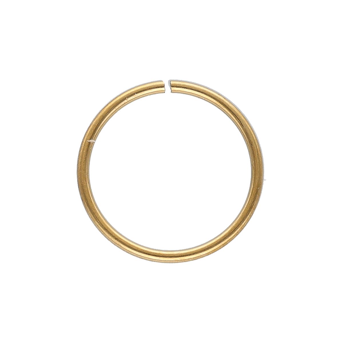 L'anneau continu est fabriqué en acier chirurgical 316L de haute qualité avec un revêtement PVD doré. L'anneau est facile à plier et à insérer dans le canal de dérivation (nez, oreille et lèvre). Le matériau utilisé est caractérisé par ses propriétés particulières telles que la solidité des couleurs et la résistance des matériaux. L'anneau a une épaisseur de tige de 0,8 mm, 1 mm et 1.2 mm et est disponible en diamètres de 6 mm, 8 mm et 10 mm.