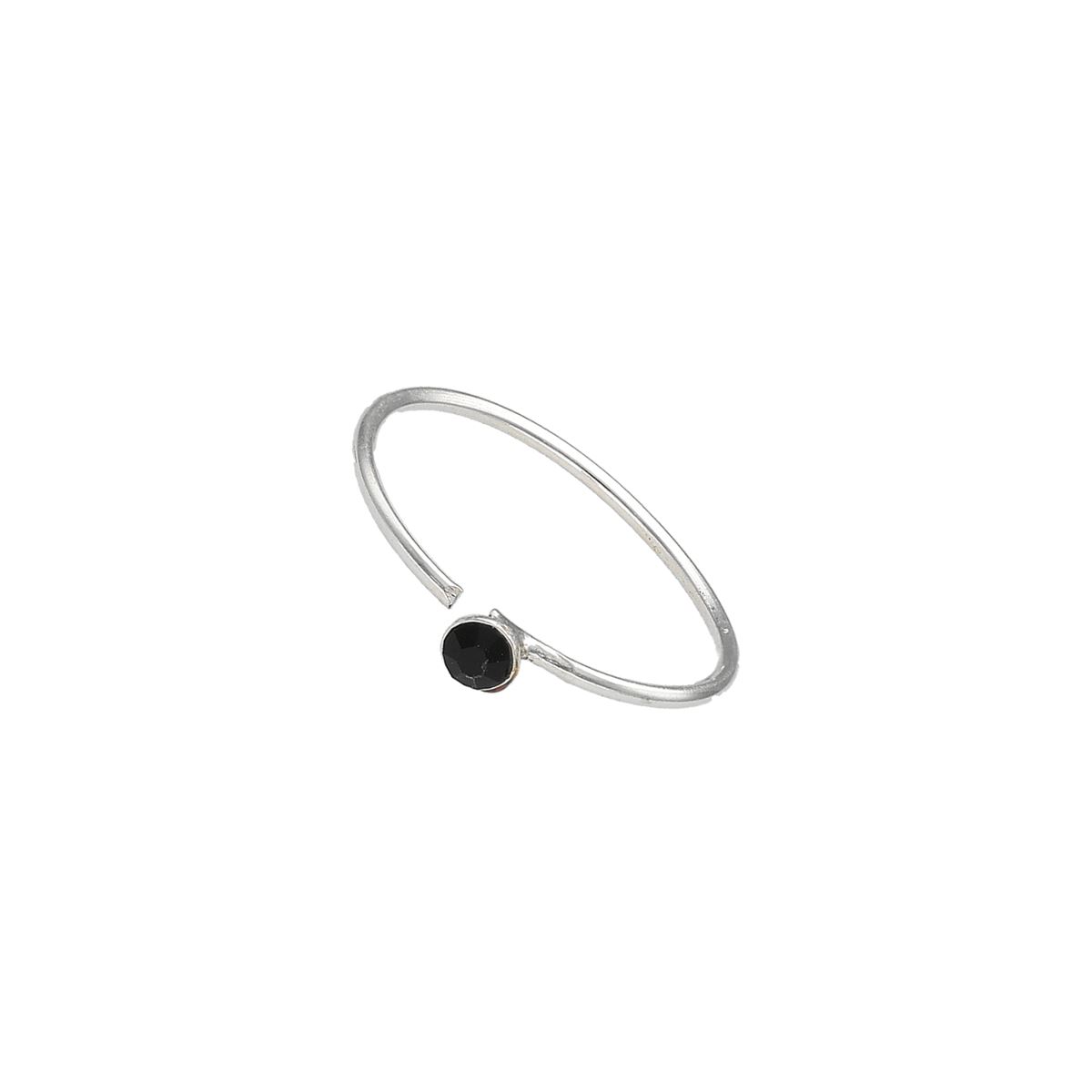 Anneau continu en argent 925%, pliable avec un petit cristal noir