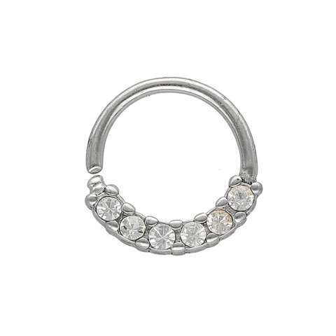 Anneau continu pliable en acier chirurgical avec 6 cristaux blancs