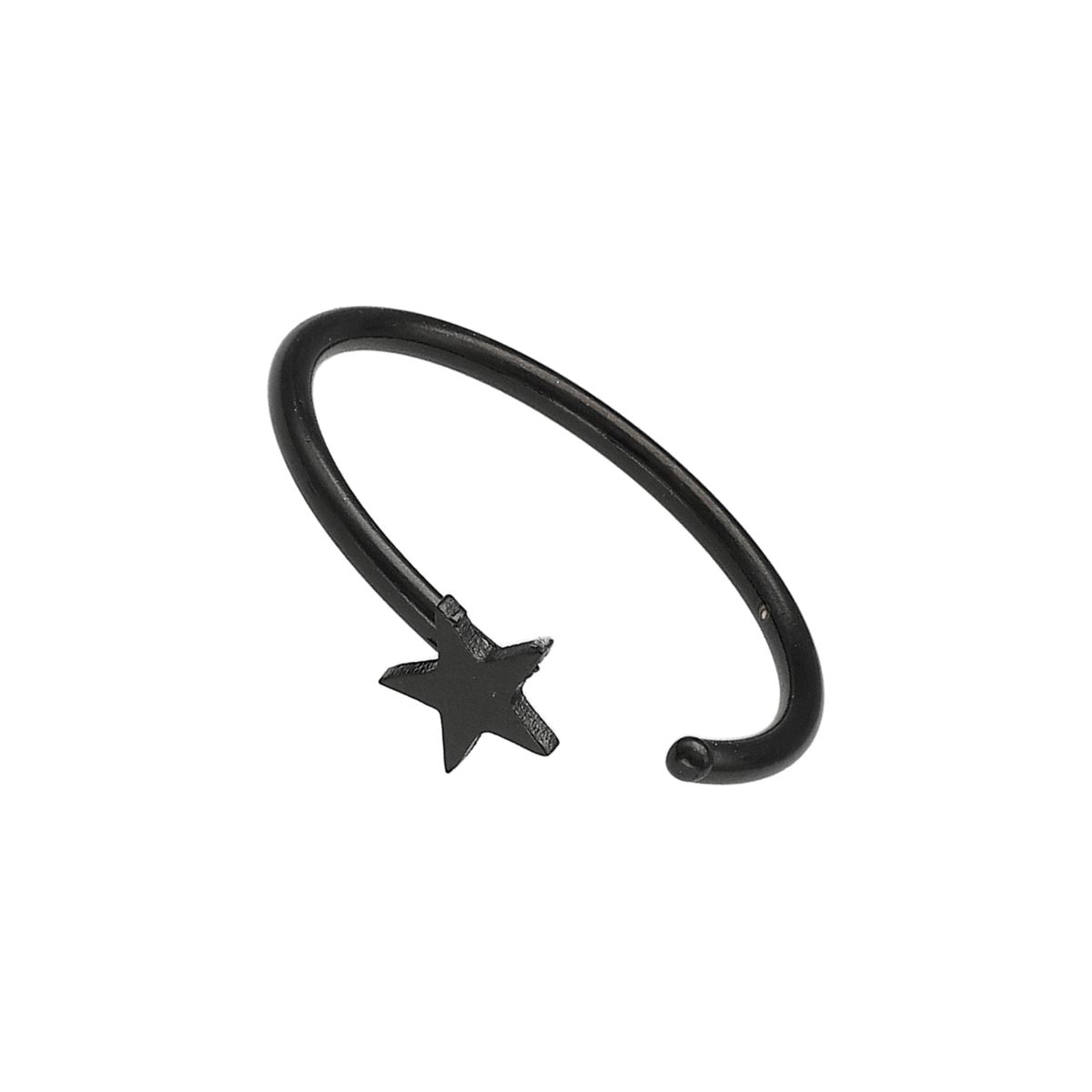 L'anneau flexible est fabriqué en acier chirurgical 316L de haute qualité avec un revêtement PVD noir. L'article est facile à plier et facile à utiliser. Le matériau utilisé offre une bonne résistance et compatibilité avec la peau. Ce anneau avec un cristal fixe est idéale pour un perçage au nez, mais aussi pour un piercing au helix. Le bijou est disponible en épaisseur de 0,8 mm et en diamètre 8 mm et 10 mm. Le diamètre de l'étoile est de 3 mm.