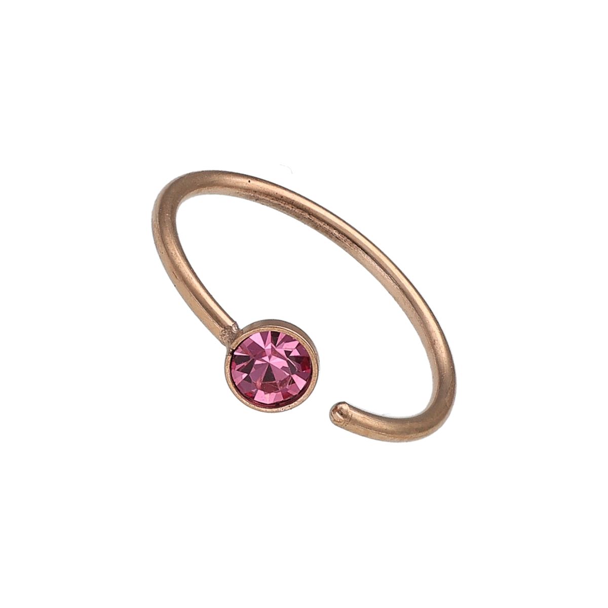 L'anneau flexible est fabriqué en acier chirurgical 316L de haute qualité avec un revêtement PVD rose doré. L'article est facile à plier et facile à utiliser. Le matériau utilisé offre une bonne résistance et compatibilité avec la peau. Ce anneau avec un cristal fixe est idéale pour un perçage au nez, mais aussi pour un piercing au helix. Le bijou est disponible en épaisseur de 0,8 mm et en diamètres 8 mm et 10 mm. Le diamètre du cristal est de 3 mm.