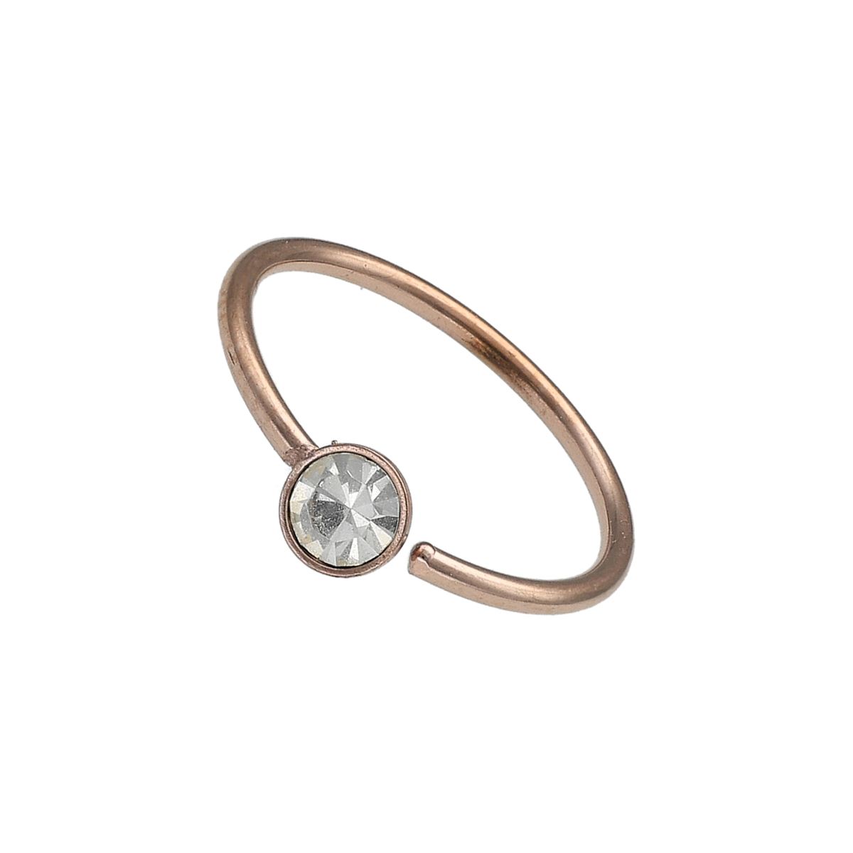 Anneau en acier rose doré chirurgical, pliable avec un cristal blanc