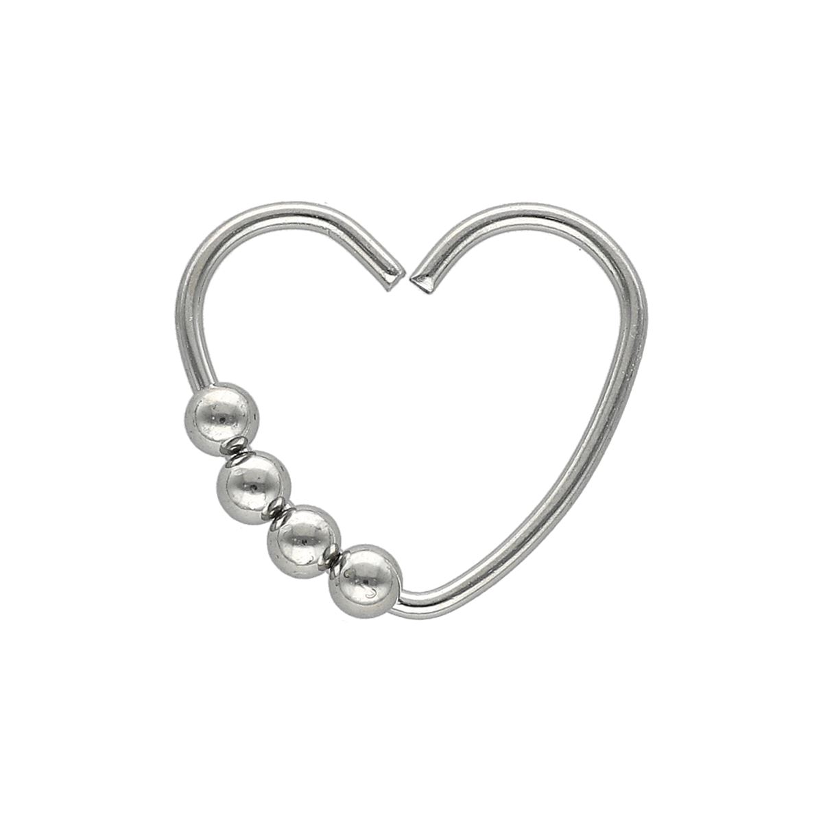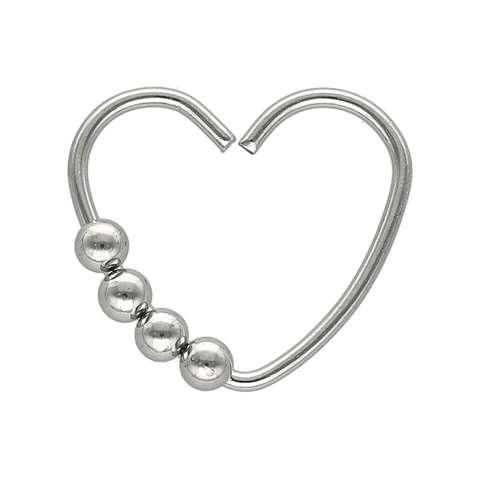 Anneau pliable en acier chirurgical, coeur avec 4 petites boules