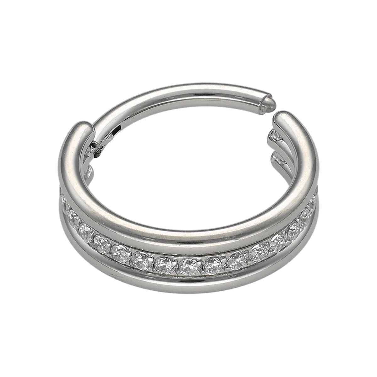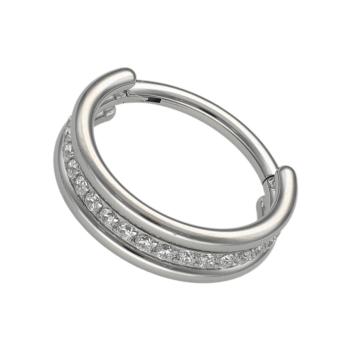 Anneau/segment en acier chirurgical avec 3 barres dont 1 recouvert de cristaux blancs
