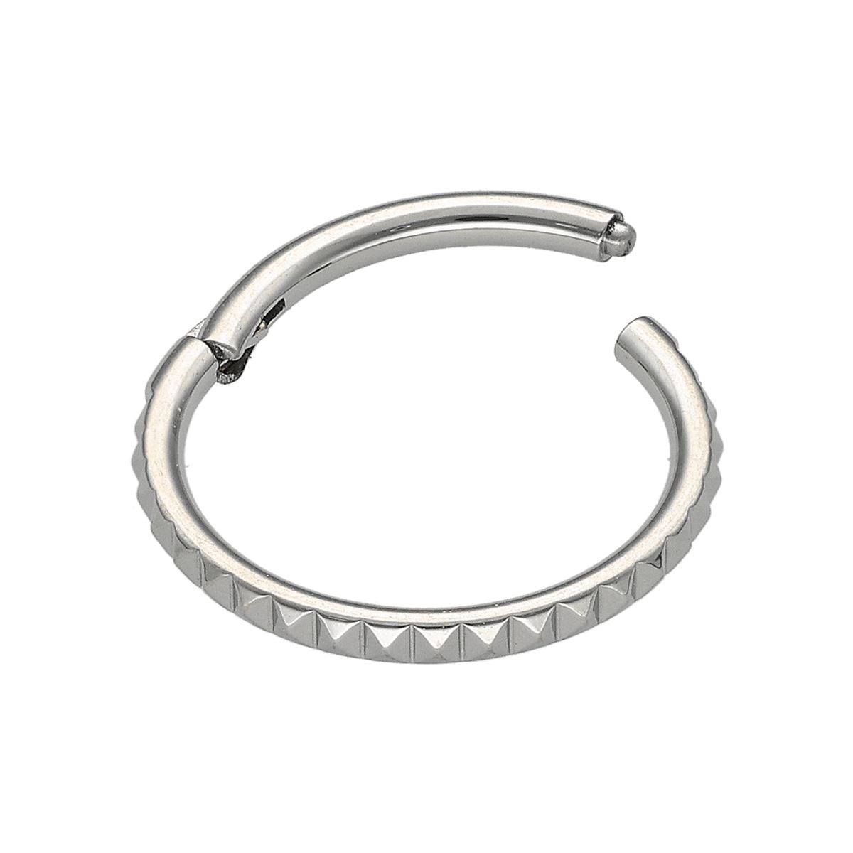 Facile à utiliser et beau design - ce sont nos anneaux avec charnière ! La principale caractéristique de l'anneau / segment est la charnière pratique, qui le rend beaucoup plus facile à utiliser dans le canal d'insertion. Le matériau utilisé pour la production (acier chirurgical 316L) se caractérise notamment par sa structure plate et sa haute qualité. Que ce soit sur l'oreille, le nez ou la lèvre - nos anneaux conviennent à une grande variété de piercings. Ce piercing a une épaisseur de barre de 1,2 mm et est disponible avec un diamètre intérieur de 6 mm, 8 mm, 10 mm ou 12 mm.
