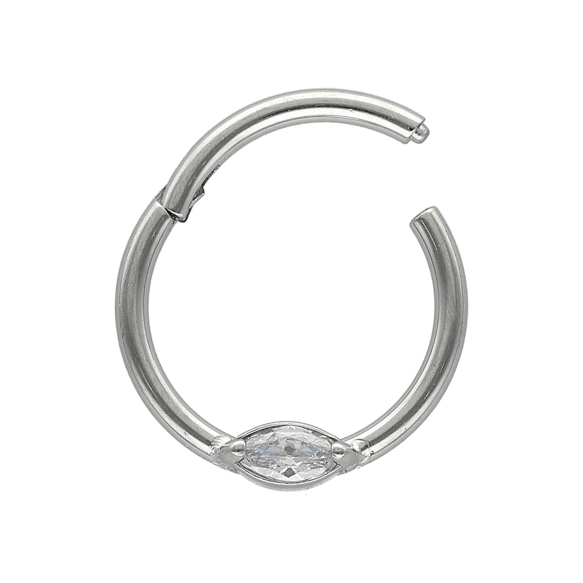 Anneau/segment en acier chirurgical avec un cristal blanc ovale