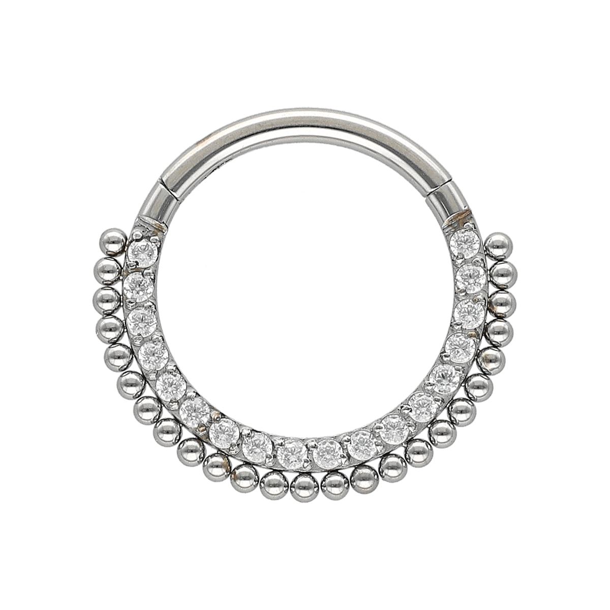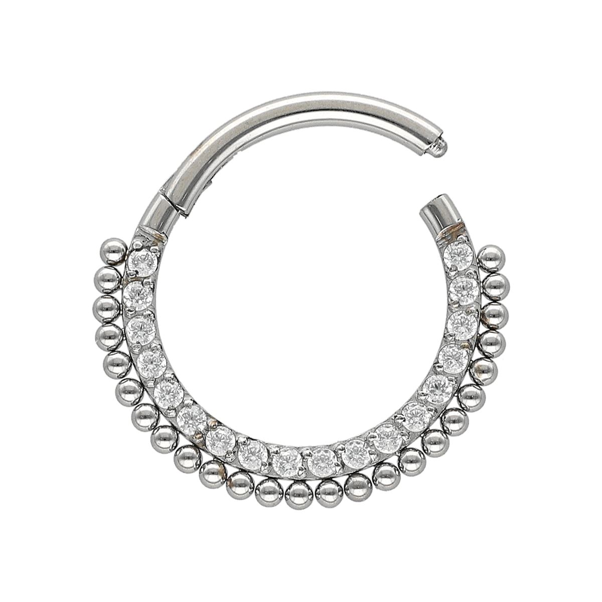Anneau/segment en acier chirurgical, charnière avec des petites boules et des cristaux blancs swarovski