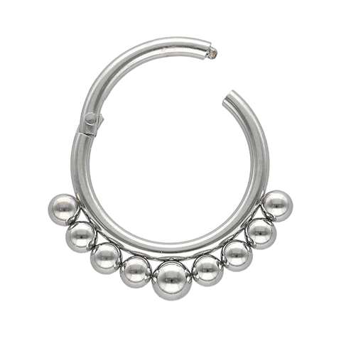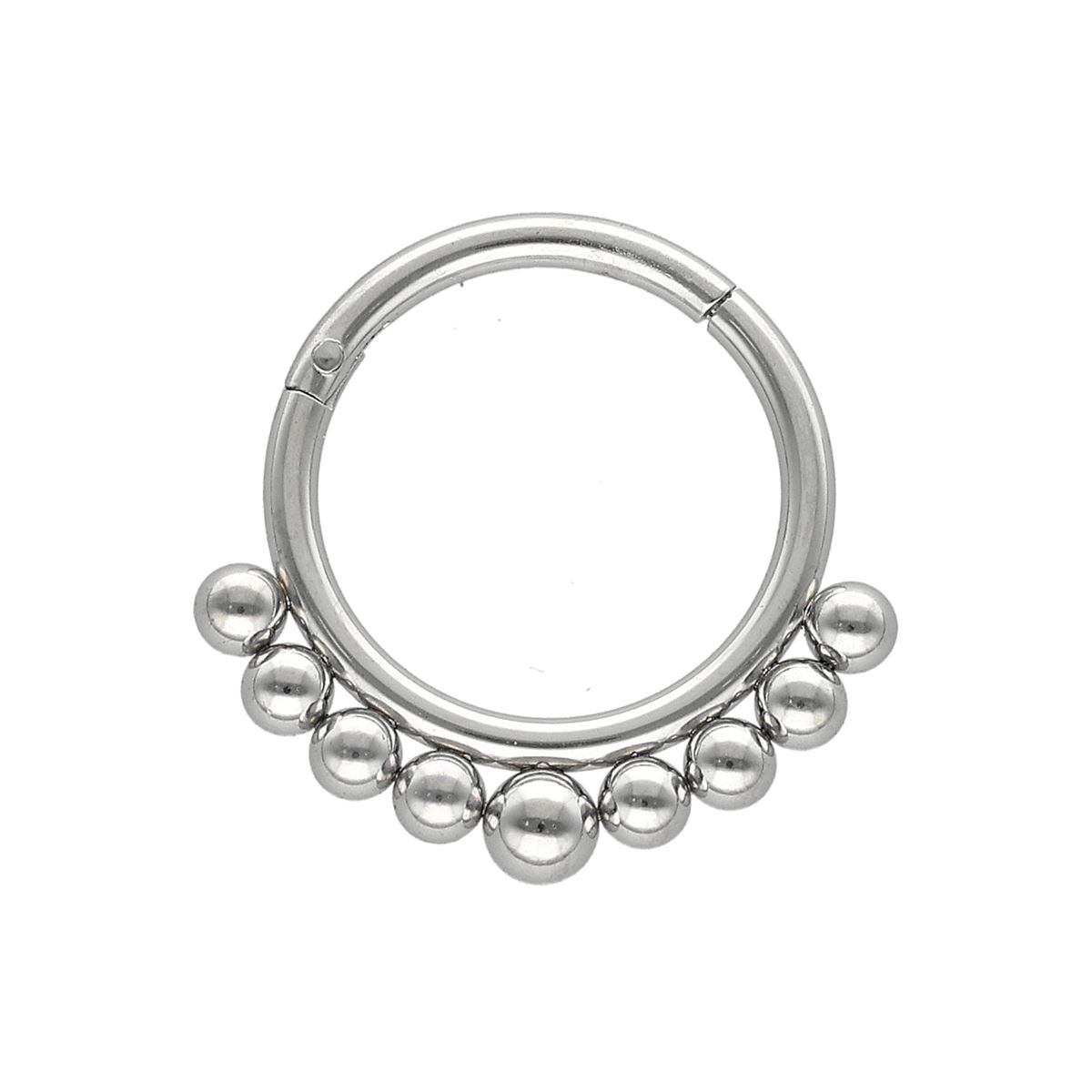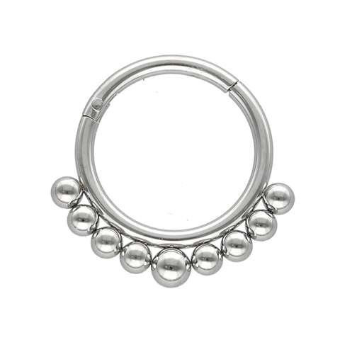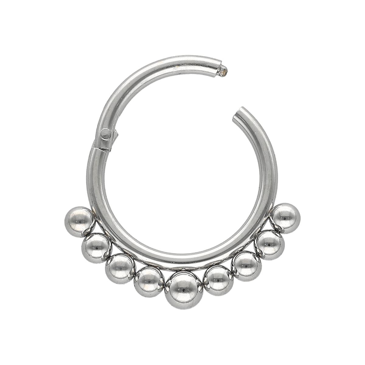 Ce piercing spécial est fabriqué en Acier chirurgical 316L de haute qualité. Le segment est attaché à une charnière, ce qui facilite l'ouverture de l'anneau. Les piercings de clicker sont appropriés pour l'usage dans le septum et beaucoup d'autres secteurs de corps (tels que l'oreille). Le segment/l'anneau a une épaisseur de tige de 1,2 mm et est disponible en diamètres de 8 mm et 10 mm.