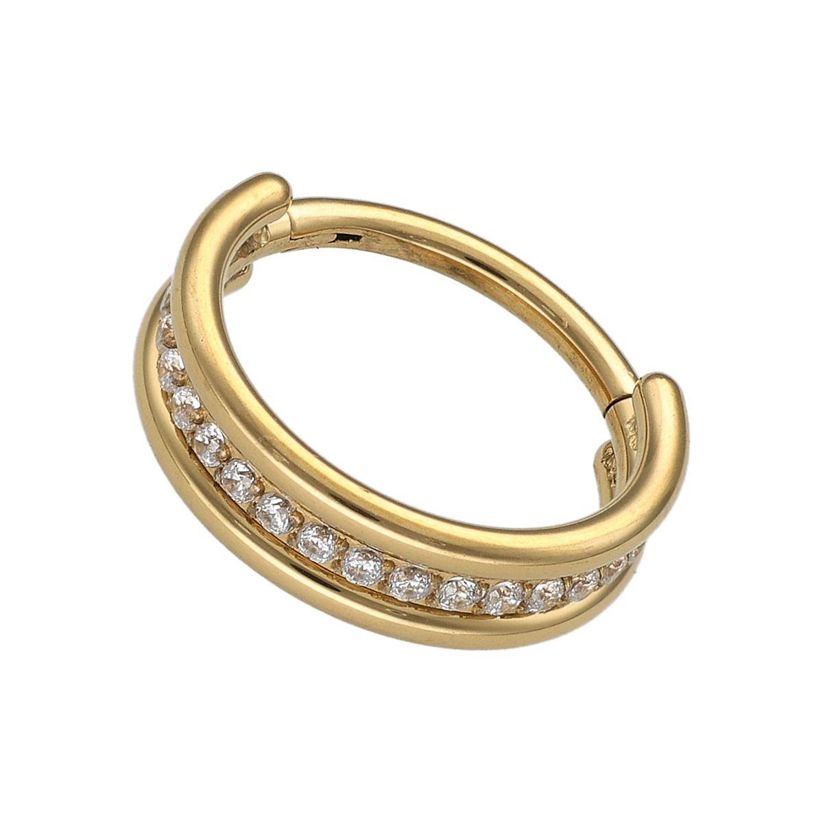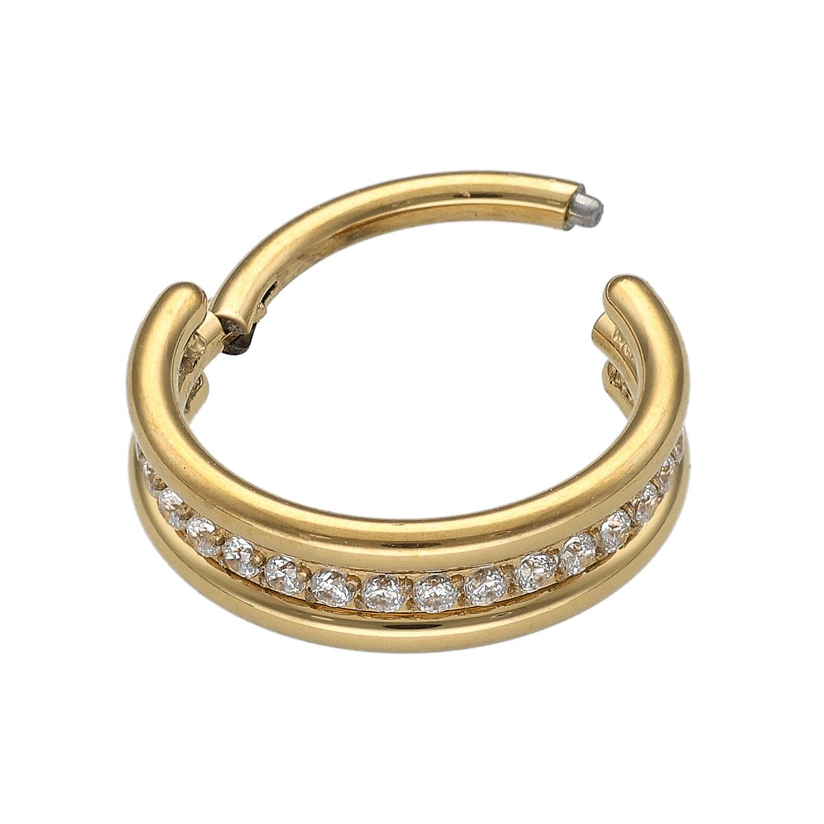 Anneau/segment en acier doré chirurgical avec 3 anneaux dont 1 couvert de cristaux blancs