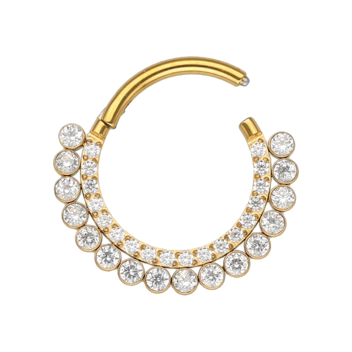 Anneau/segment en acier doré chirurgical avec charnière et cristaux blancs à double rangée