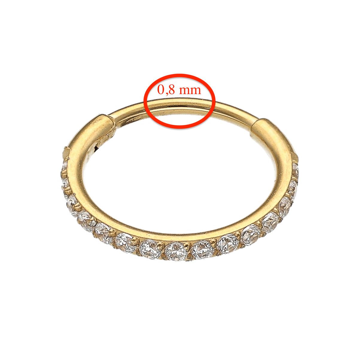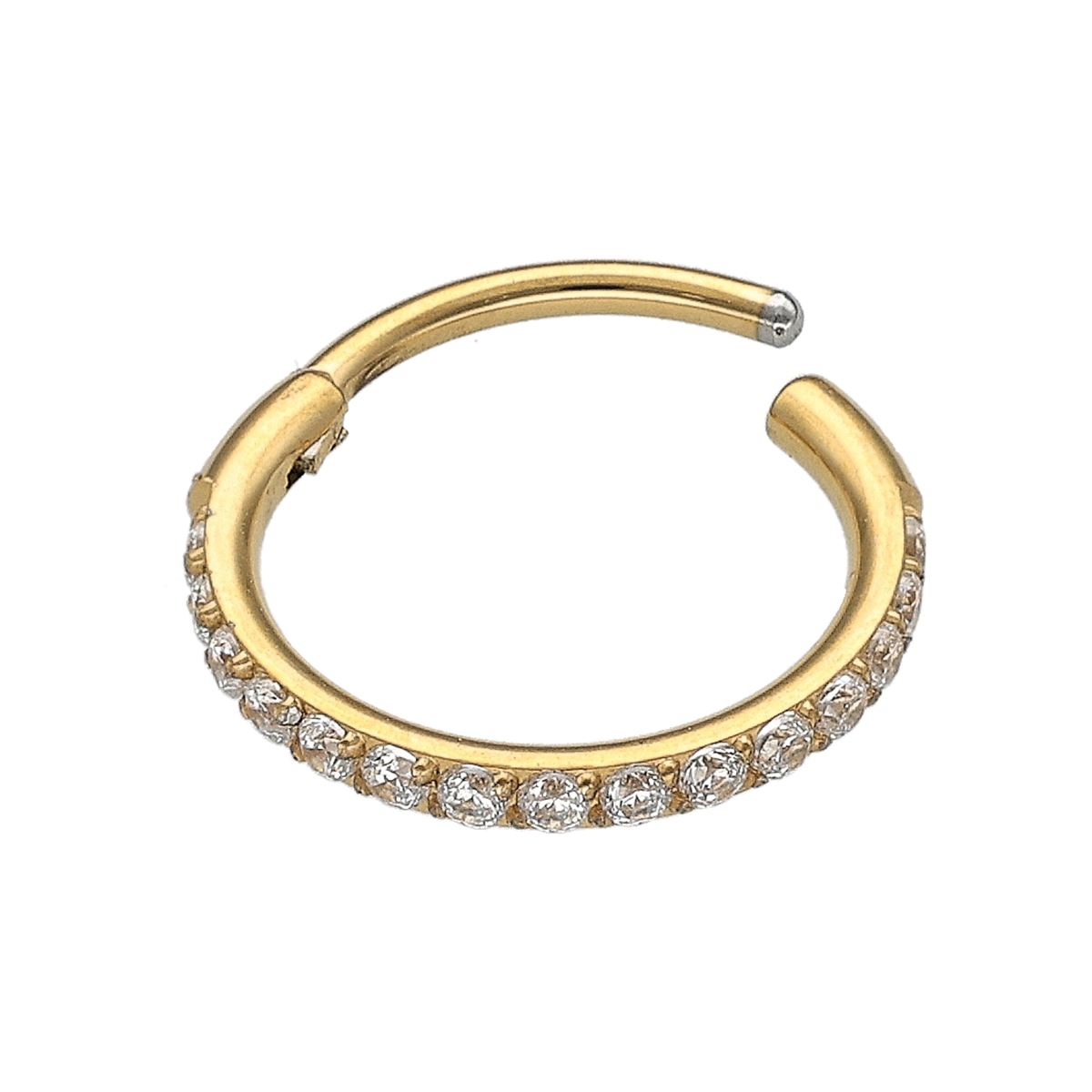 Anneau/segment en acier doré chirurgical avec charnière et différents cristaux blancs-extra fin 0.8mm