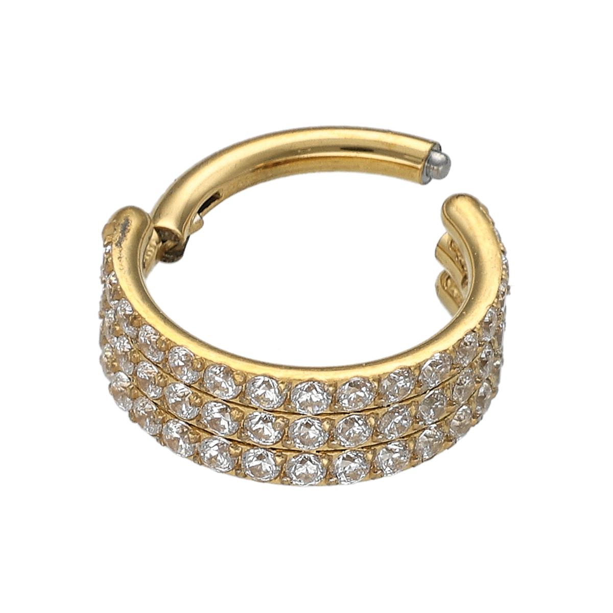 Anneau/segment en acier doré chirurgical, charnière avec des cristaux blancs swarovski