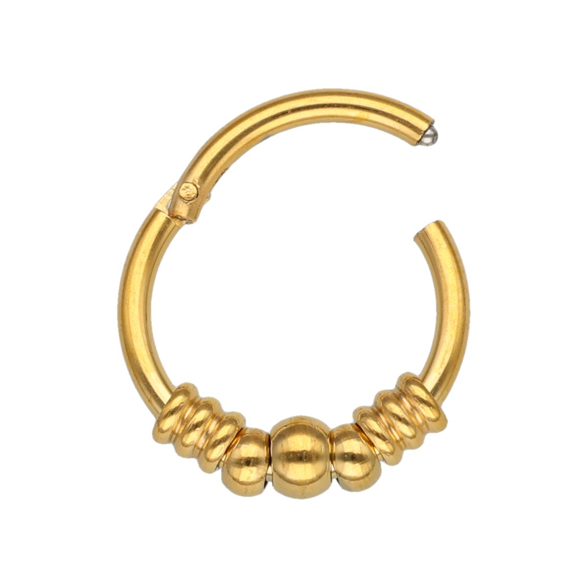 Anneau segment en acier doré chirurgical, charnière et 3 boules