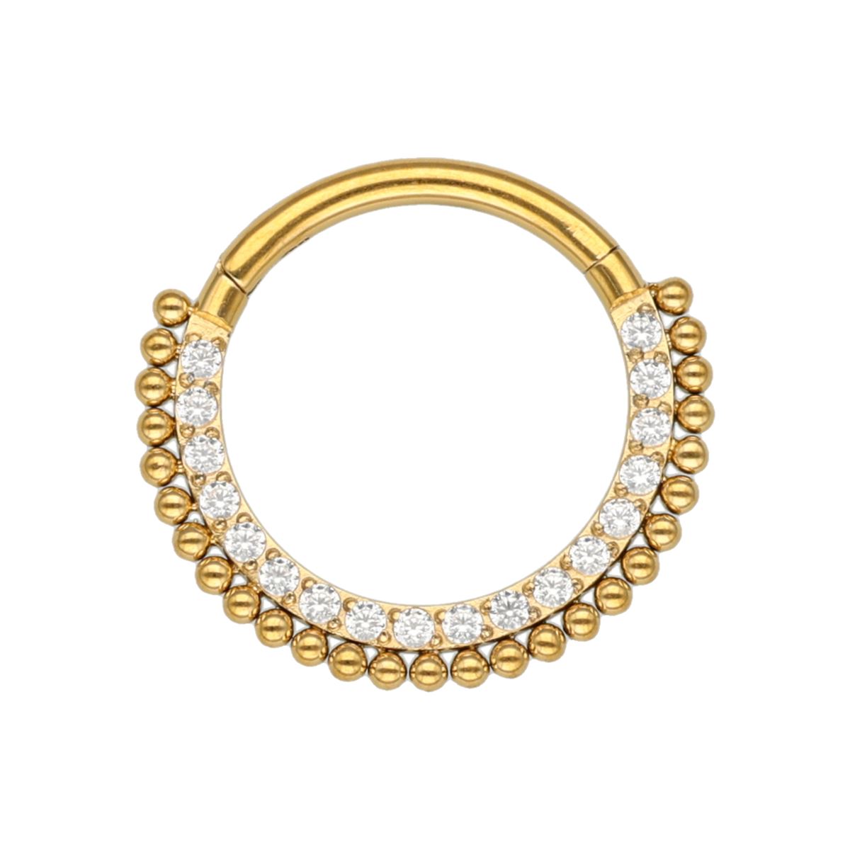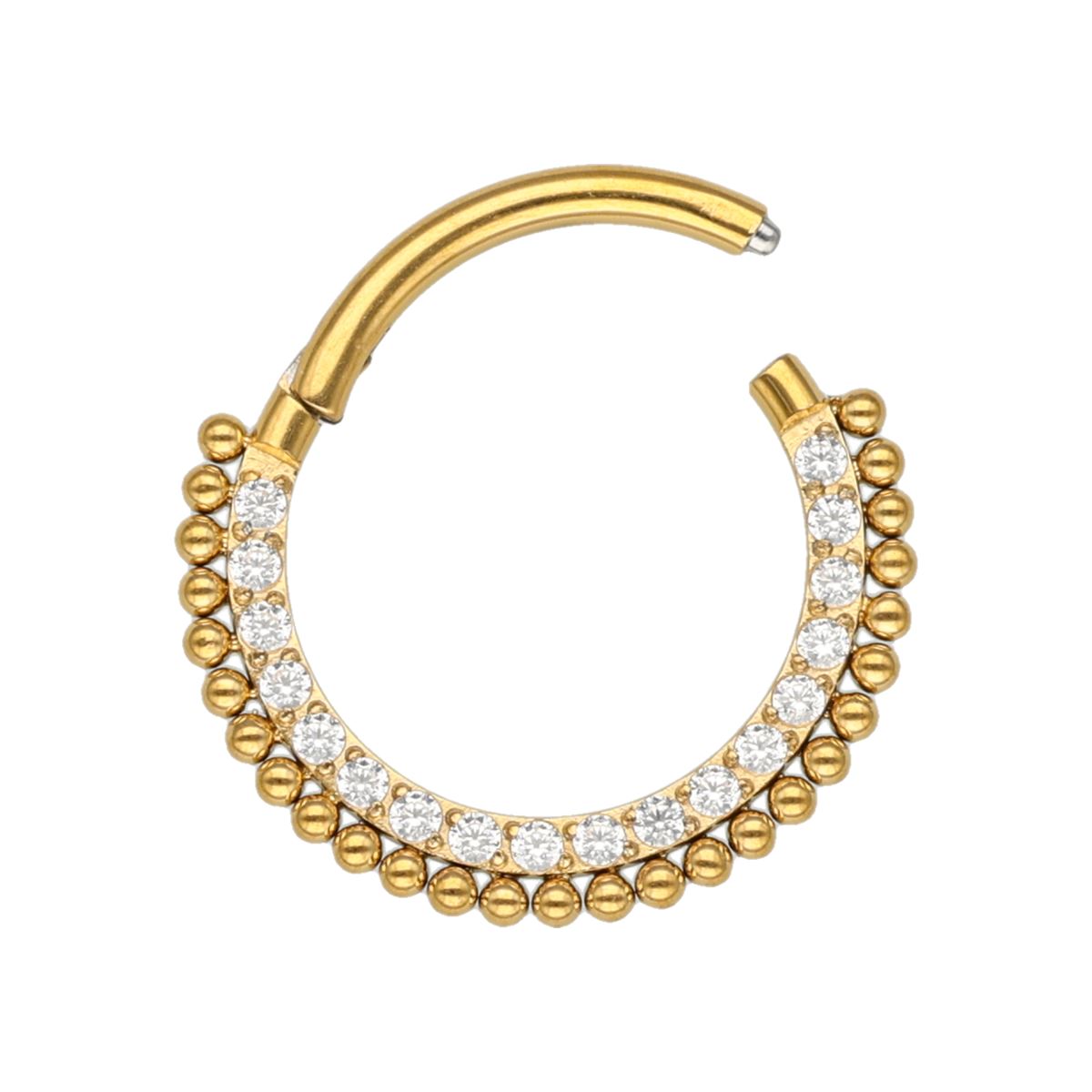 Anneau/segment en acier doré chirurgical, petite boules avec des cristaux blancs Swarovski