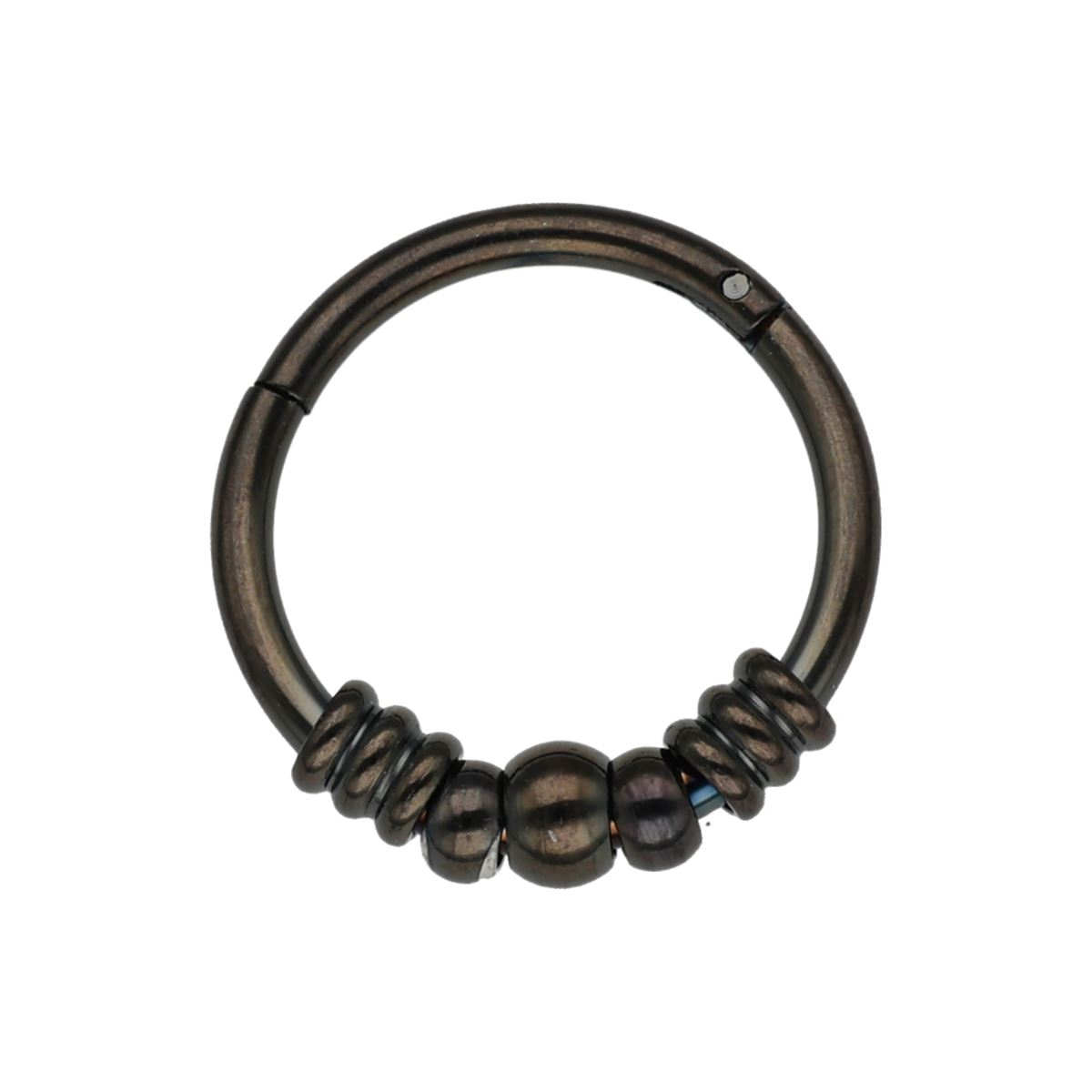 Anneau segment en acier noir chirurgical, charnière et 3 boules