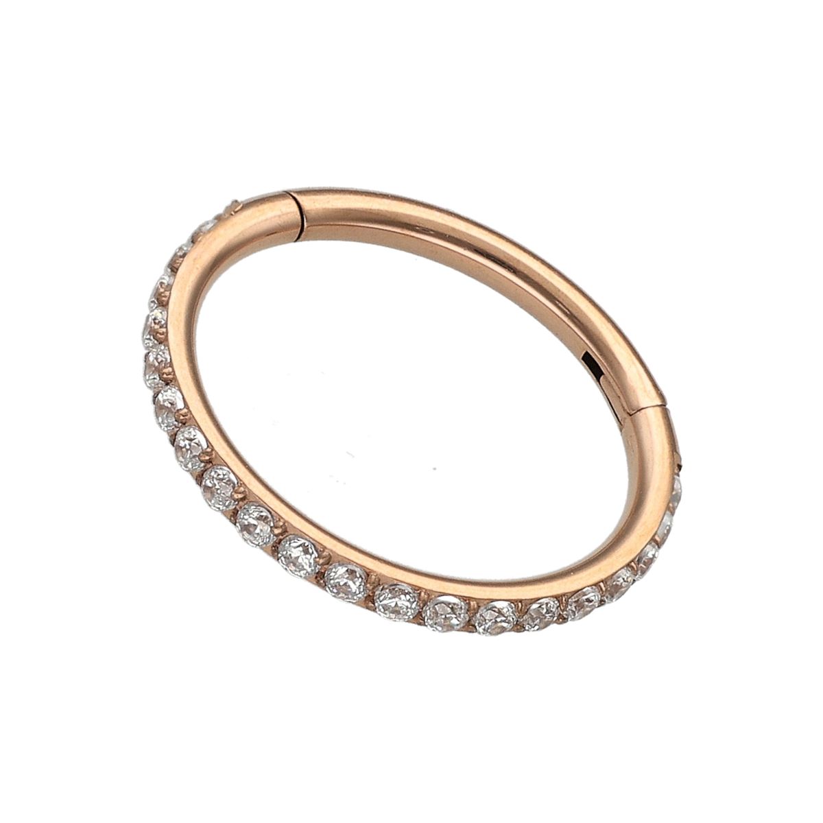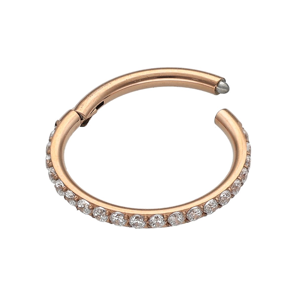 Anneau/segment en acier rose doré chirurgical avec charnière et différents cristaux blancs