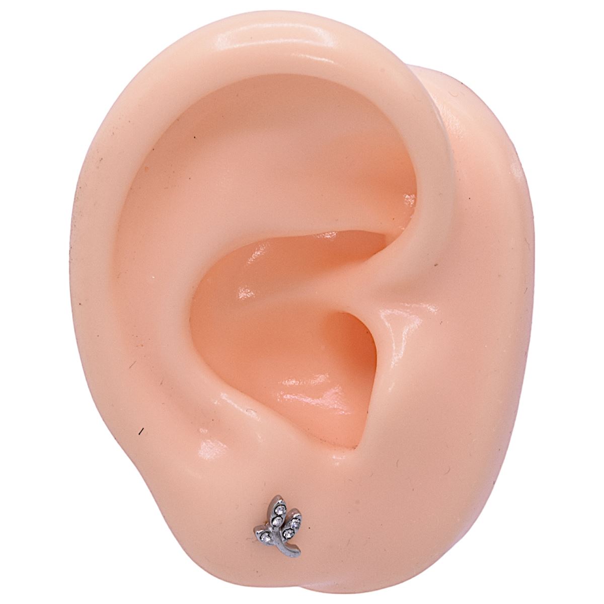 Boucles d'oreilles en acier chirurgical avec une feuille et des cristaux