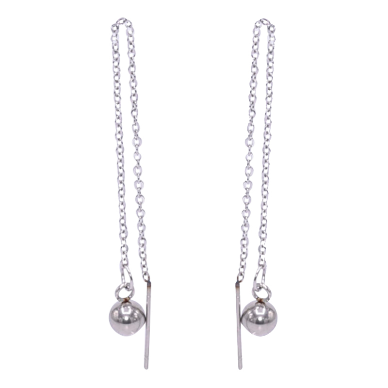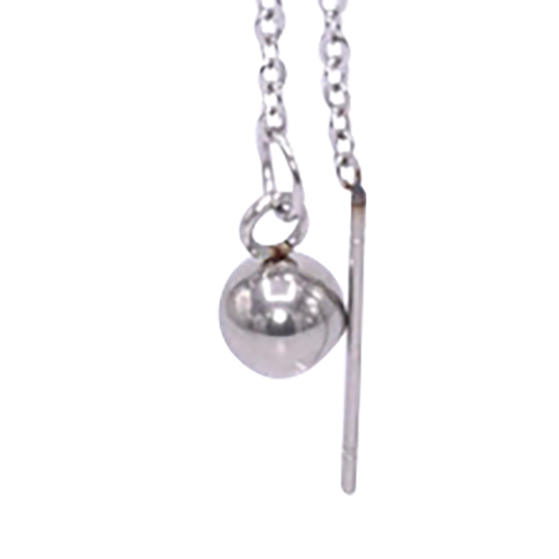 Boucle d'oreille avec une chaine en acier avec une petite boule