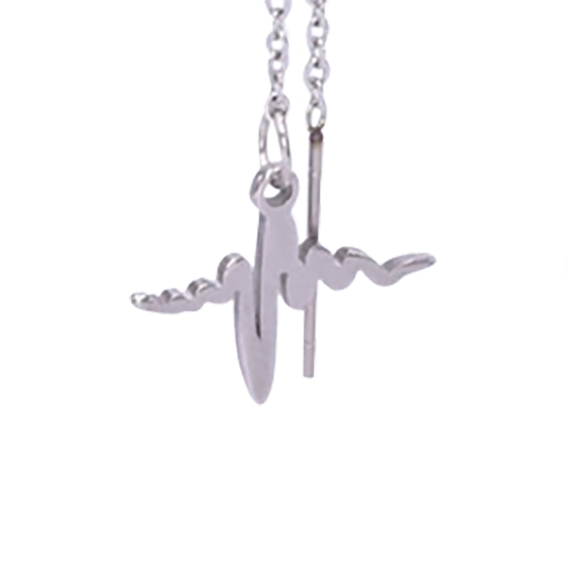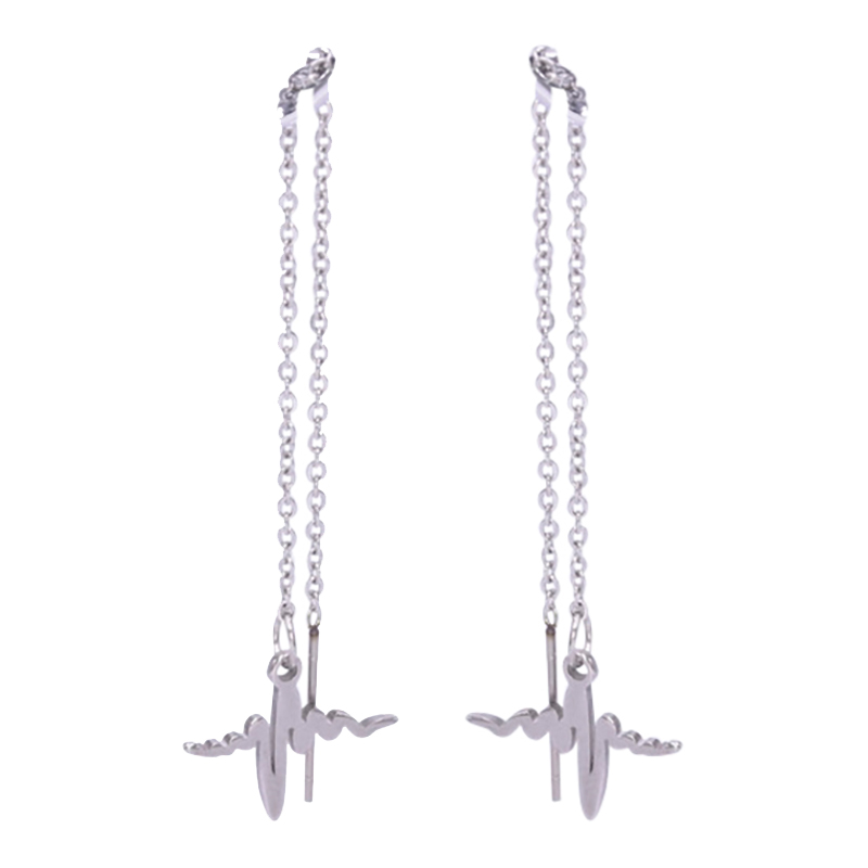 Boucle d'oreille en acier avec une chaine avec un battement de coeur