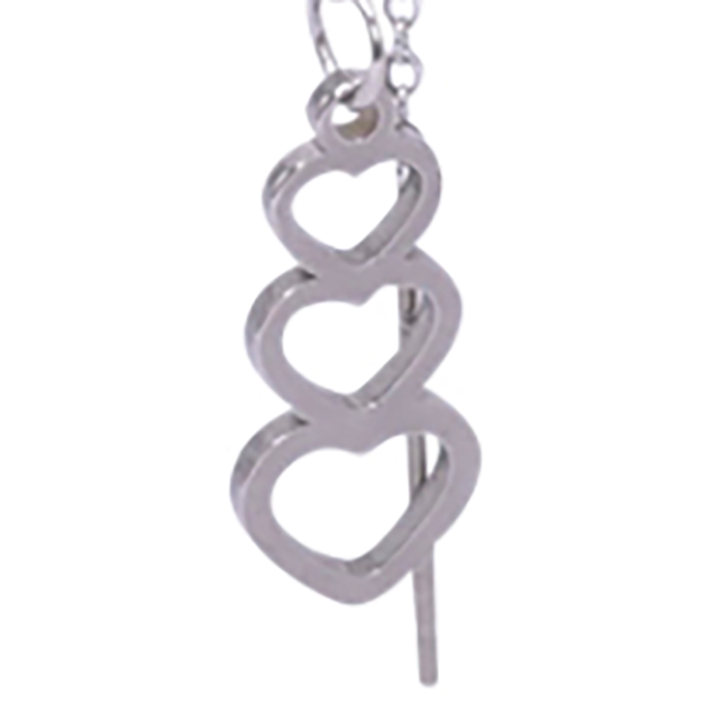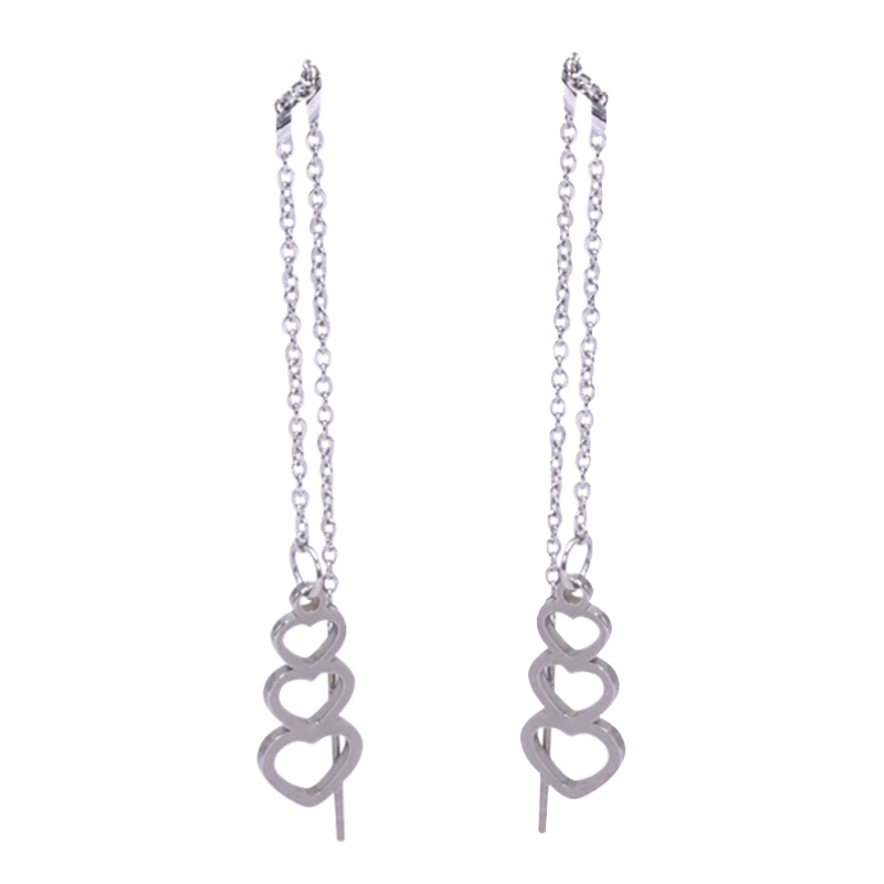 Boucle d'oreille en acier avec une chaine et 3 coeurs