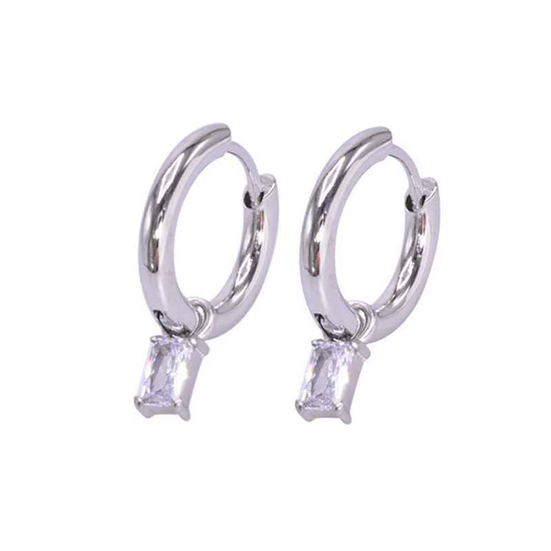 Boucle d'oreille en acier chirurgical avec un cristal carré blanc swarovski