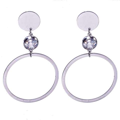 Boucle d'oreille en acier chirurgical, cristal blanc avec un anneau