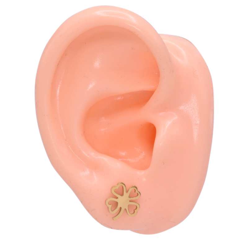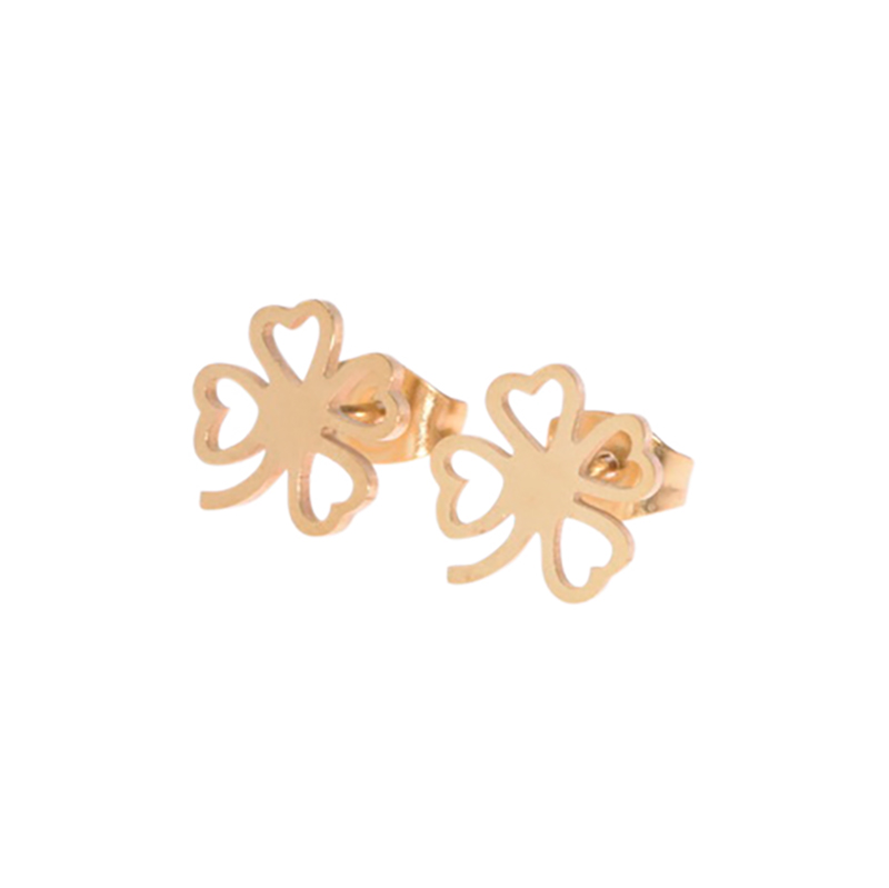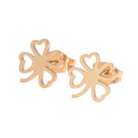 Boucle d'oreille en acier doré acec un trèfle à 4 feuilles