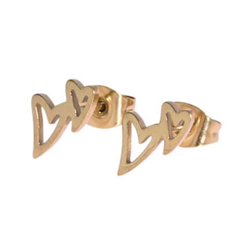 Boucle d'oreille en acier doré avec 2 coeurs