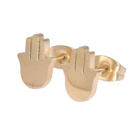 Boucle d'oreille en acier chirurgical avec revêtement PVD couleur doré. En raison de la dureté de l'acier, les bijoux ne déforment jamais ou presque. De plus, tous nos produits de cette gamme sont très confortables et sûrs à porter et bien sûr sans nickel! La hauteur de la main est de 10 mm, la largeur de 7 mm.