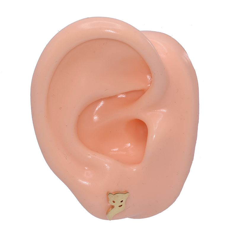 Boucle d'oreille en acier doré chirurgical avec une tête de chat