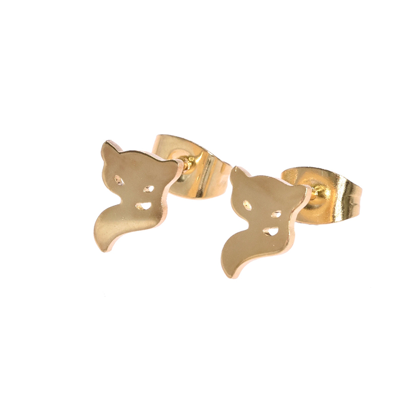 Boucle d'oreille en acier chirurgical avec revêtement PVD couleur doré. En raison de la dureté de l'acier, les bijoux ne déforment jamais ou presque. De plus, tous nos produits de cette gamme sont très confortables et sûrs à porter et bien sûr sans nickel! La longueur de la tête du chat est 9 mm.