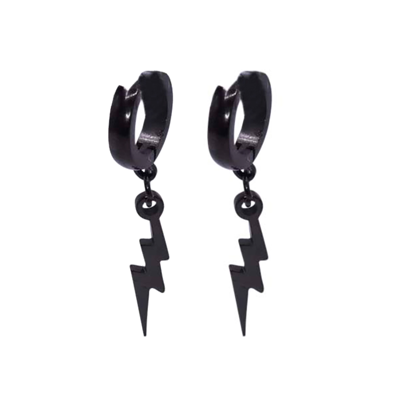 Boucle d'oreille en acier noir chirurgical avec un motif éclair