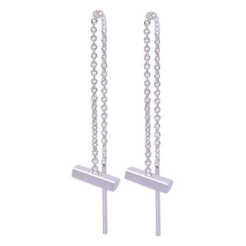 Boucle d'oreille en argent 925% avec une barre carrée droite
