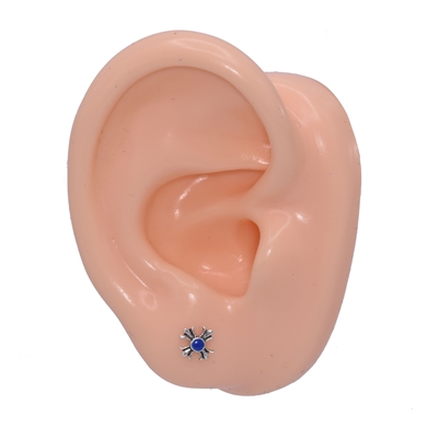 Boucle d'oreille en argent 925% avec une croix et une pointe bleu