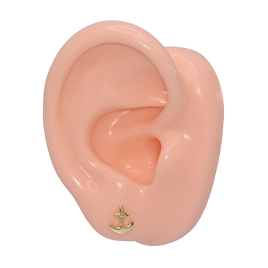 Boucle d'oreille en argent 925%, dorée avec une ancre