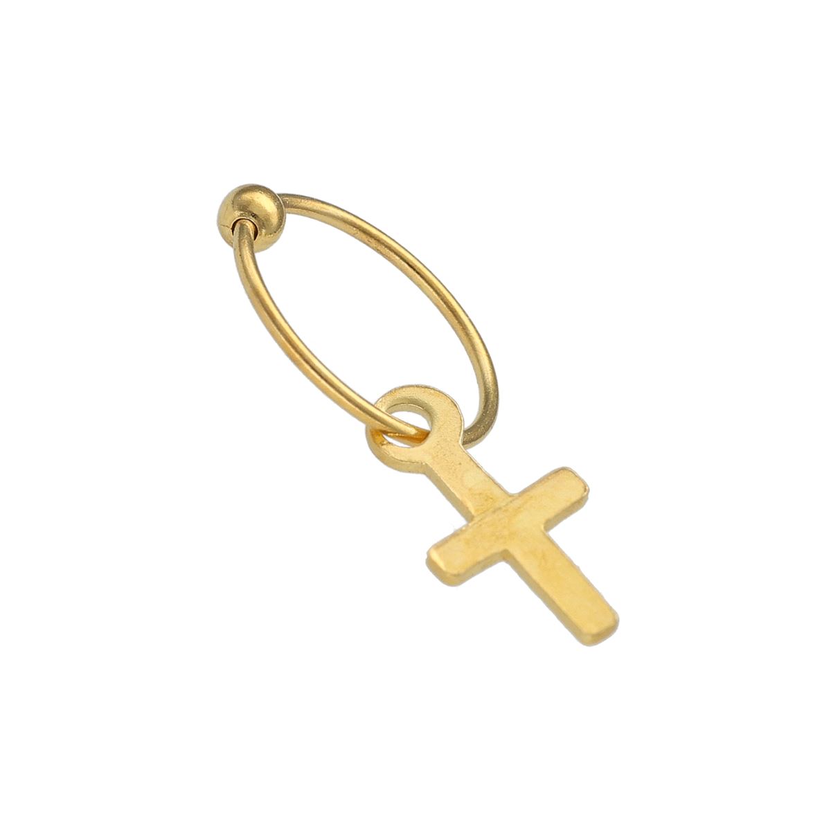 Boucle d'oreille pliable en argent 925%, couleur or avec une petite croix