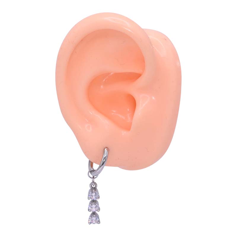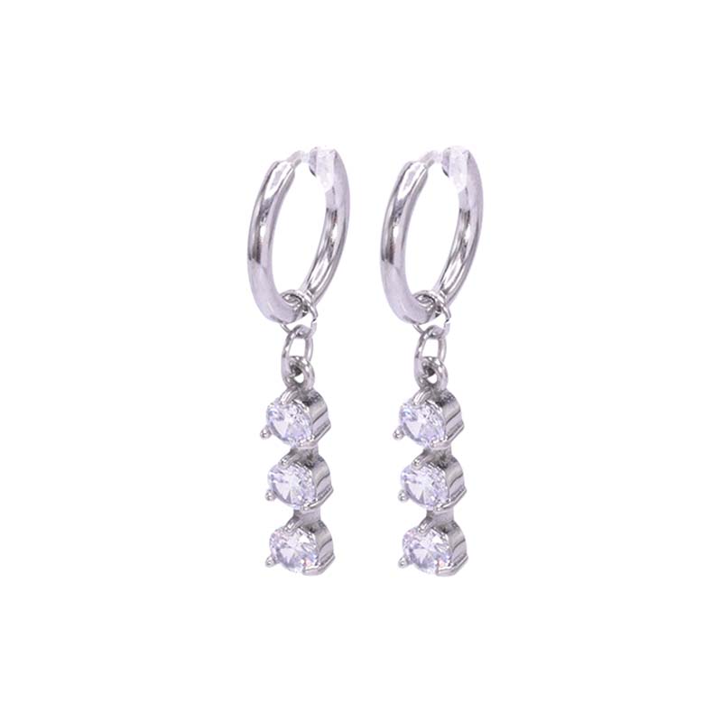 Boucles d'oreilles en acier chirurgical avec un pendentif et 3 cristaux blancs