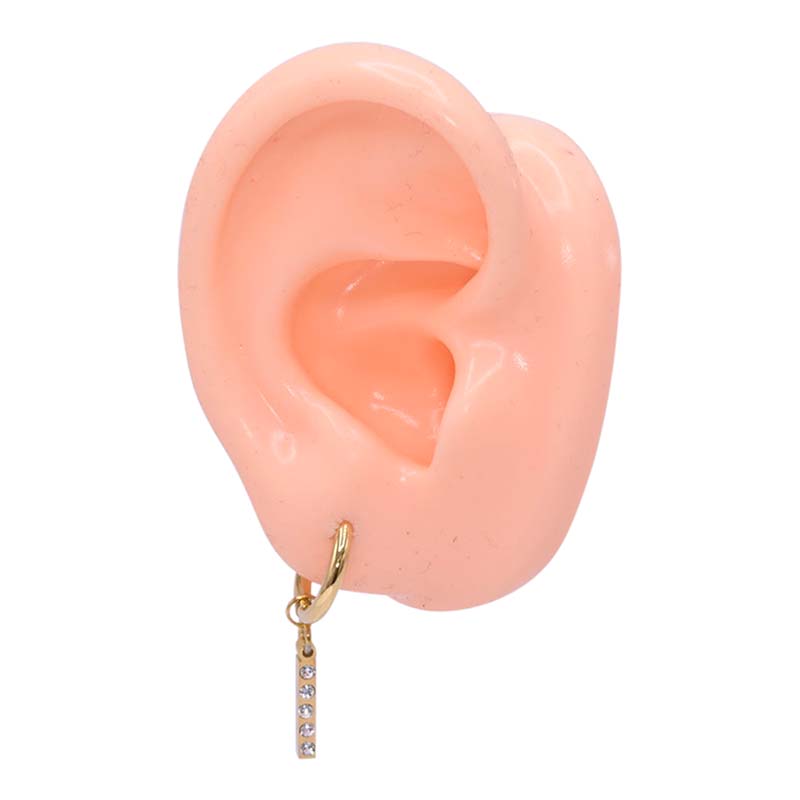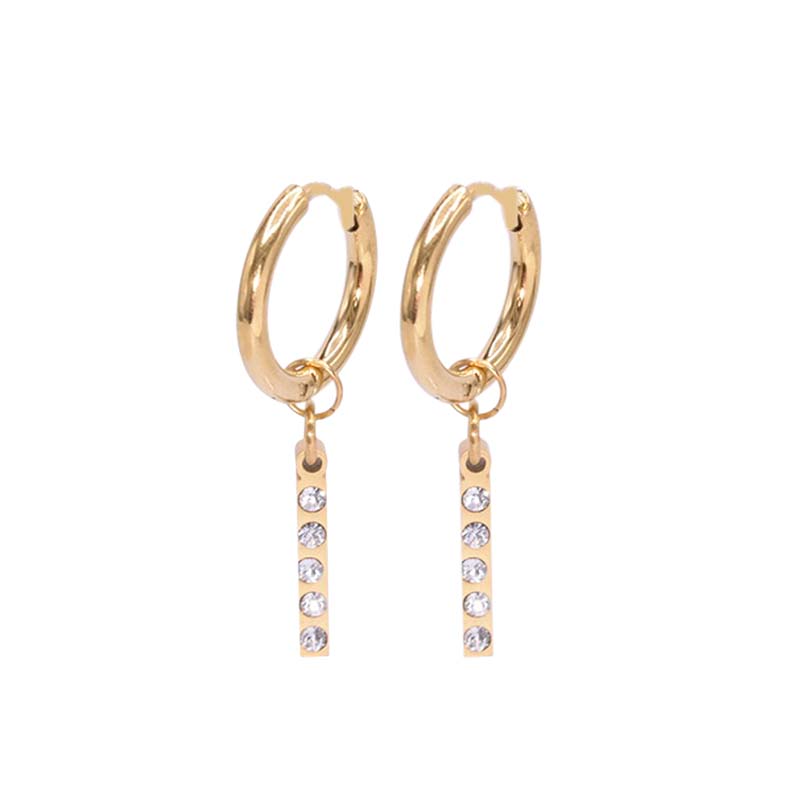 Boucles d'oreilles en acier doré chirurgical avec un pendentif rectangulaire et 5 cristaux blancs