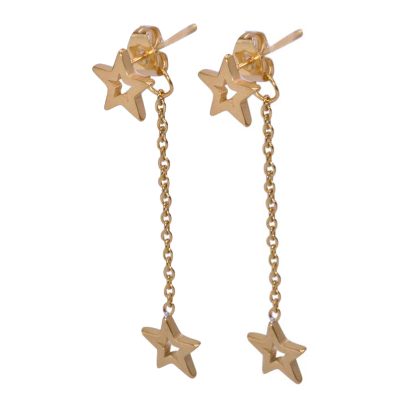 Boucles d'oreilles en acier doré chirurgical-étoile ouverte avec une chaîne