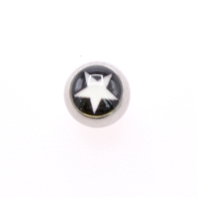 Boule en acier chirurgical, étoile blanc sur fond noir, 1.6mm