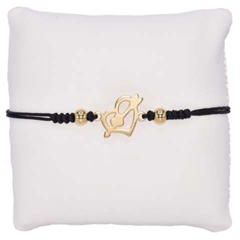 Bracelet cordon noir avec un coeur doré