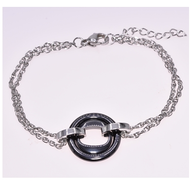Bracelet en acier avec 2 cercles en tungsten gris foncé