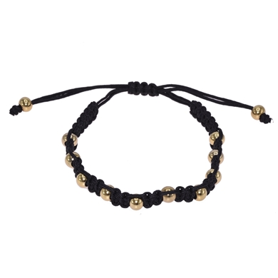 Bracelet corde noué noir. Le bracelet doré avec des boules est en acier inoxydable et a un beau look intemporel à la mode. Ce bracelet convient aux femmes et aux hommes. Le diameter des billes est de 6 mm.