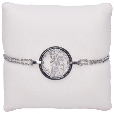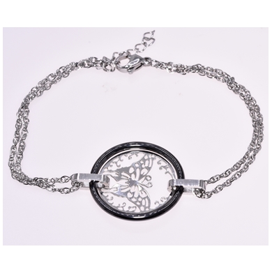 Bracelet en acier avec un cercle ouvert en tungsten gris foncé et un papillon