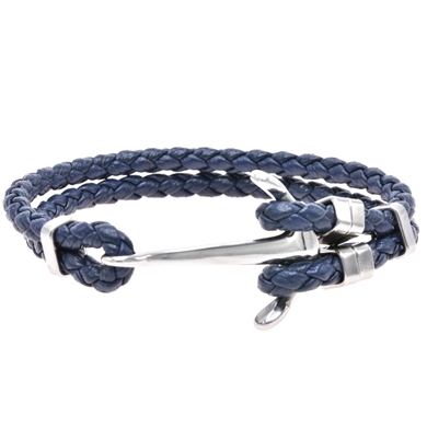 Bracelet en cuir bleu foncé tressé double avec une ancre